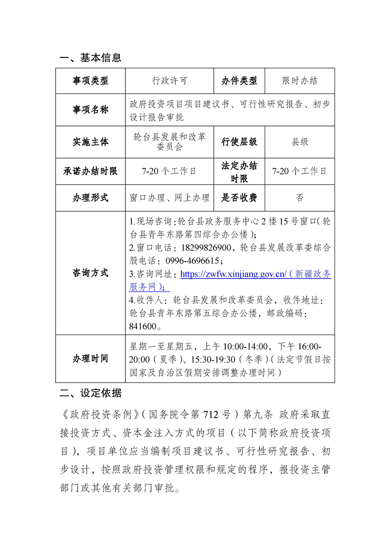 轮台县政府投资项目审批办事指南