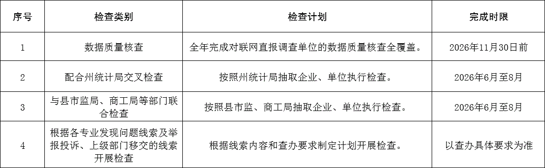 轮台县统计局2026年行政执法检查计划清单