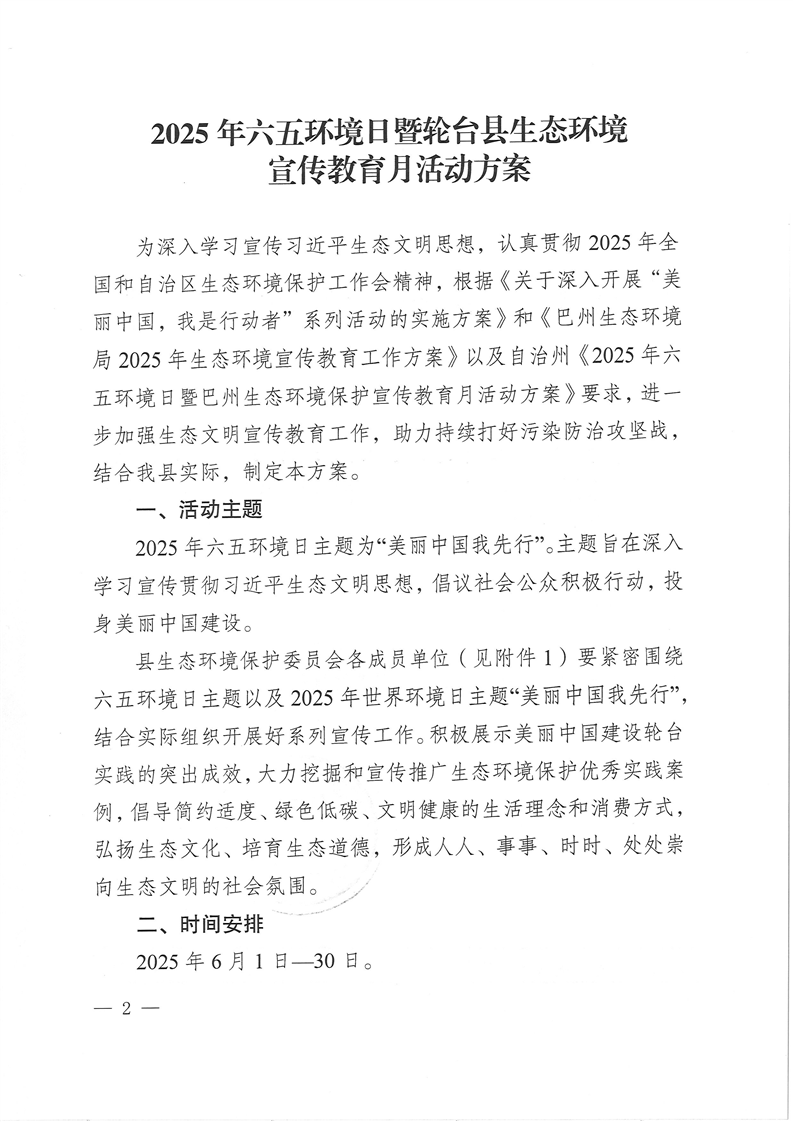 2025年六五环境日暨轮台县生态环境宣传教育月活动方案