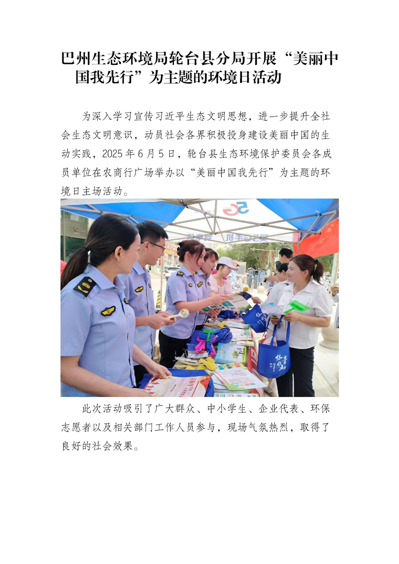 巴州生态环境局轮台县分局开展“美丽中国我先行”为主题的环境日活动